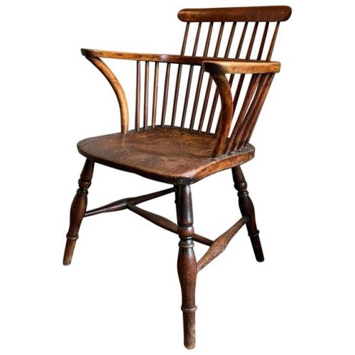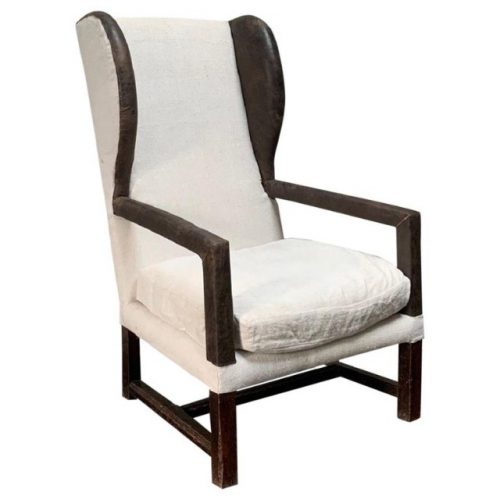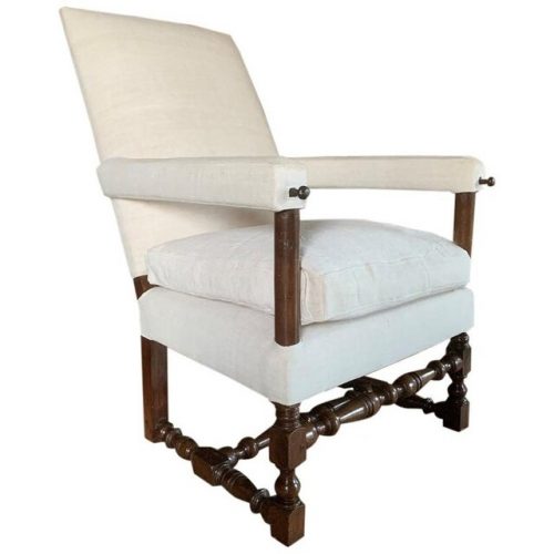 VERKOCHT 17e eeuwse notenhouten leren fauteuil oorfauteuil