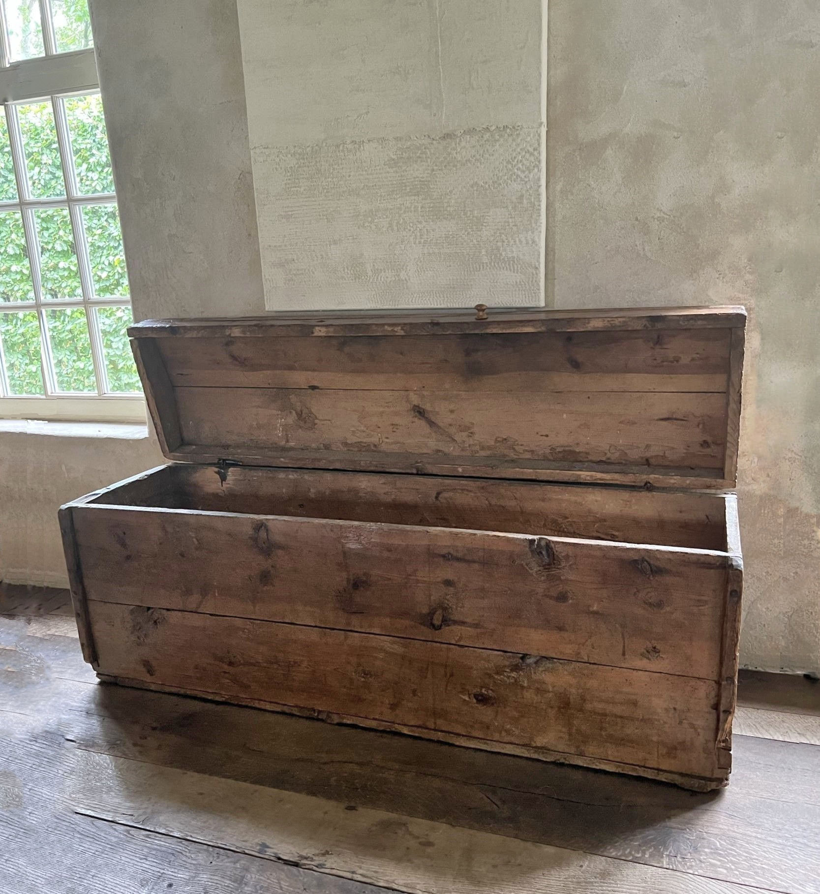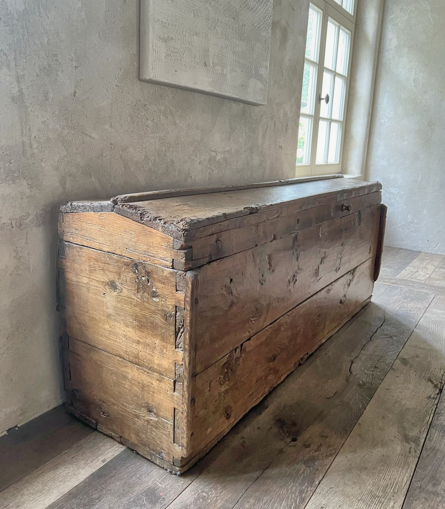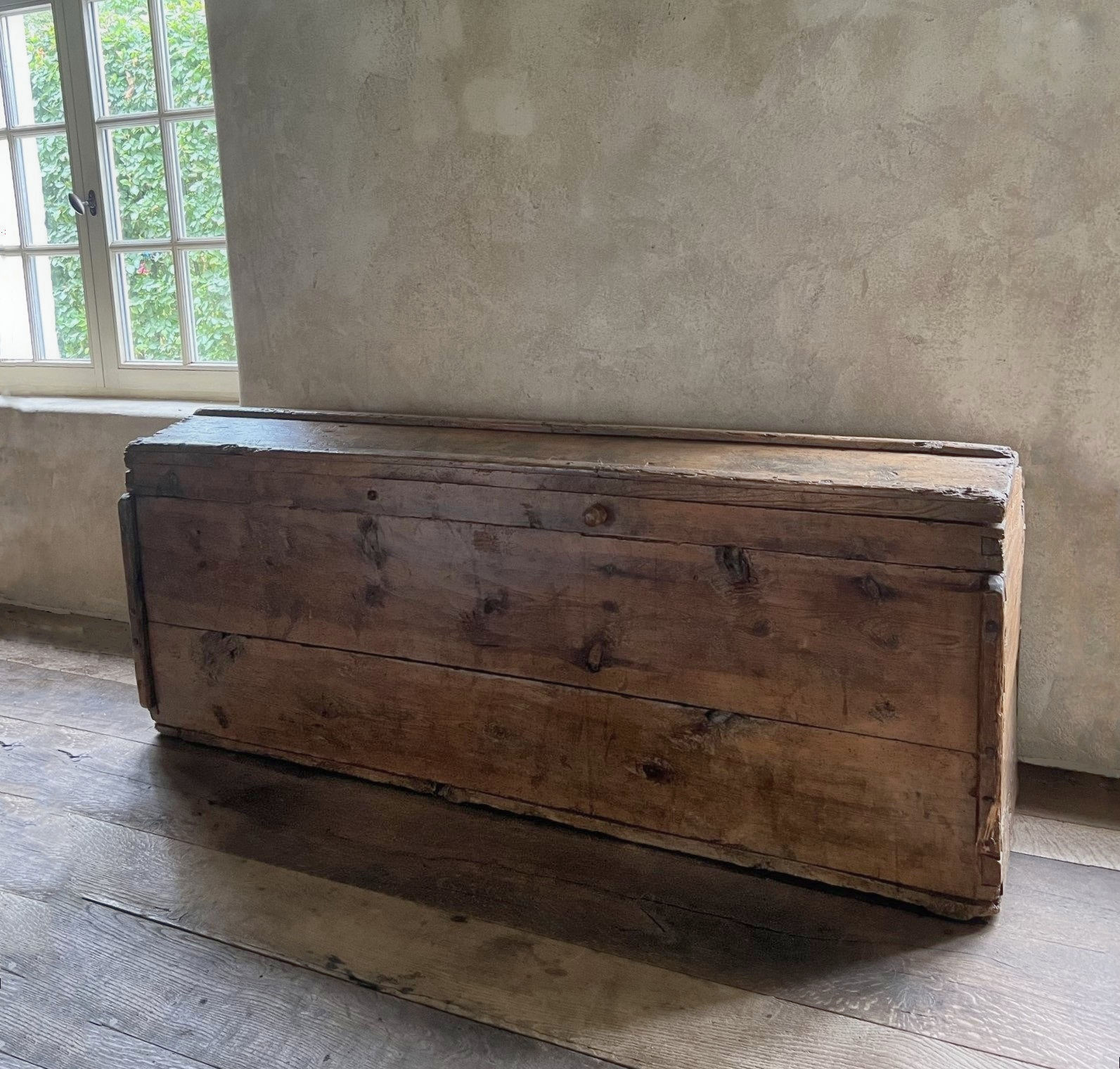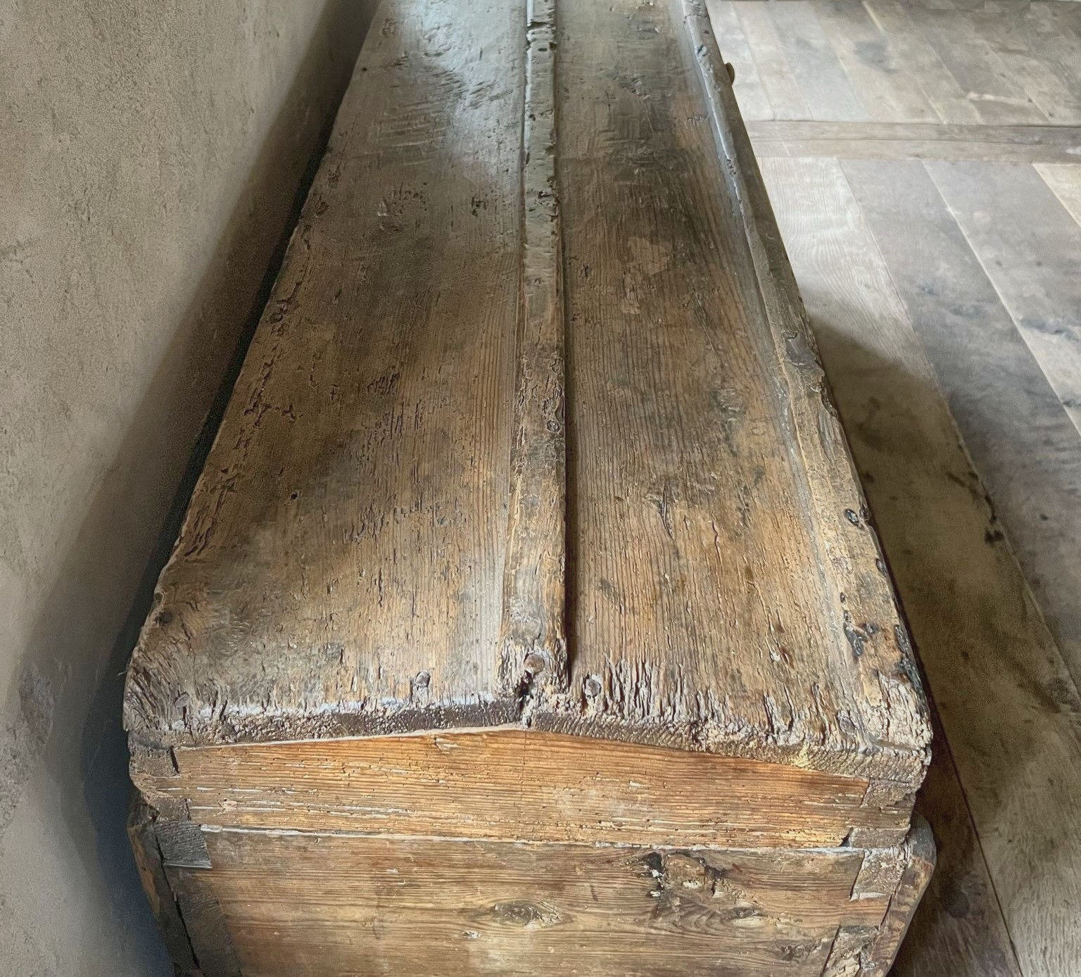 SOLD Grote 19de eeuwse kist met zadeldeksel, Frankrijk, 45 x 165 x 66 h, Ref. 2100