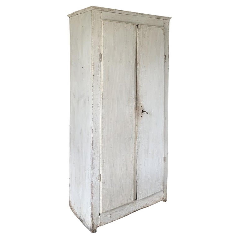 19e eeuwse linnenkast in originele witte verf