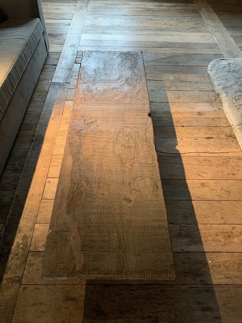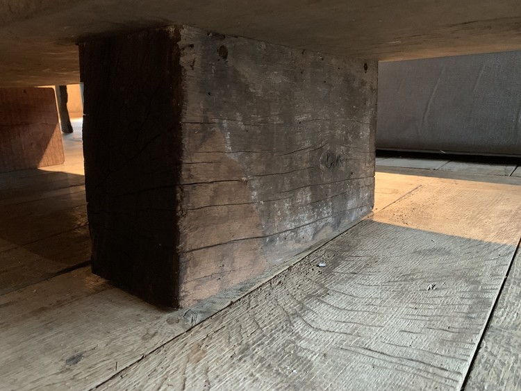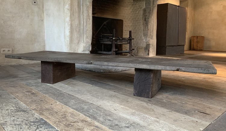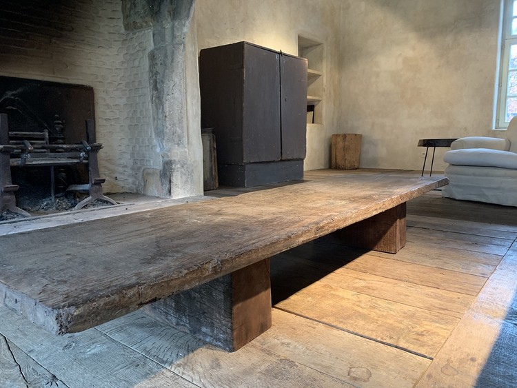 VERKOCHT Een op maat gemaakte salontafel gemaakt door ons atelier van een 18e eeuws kastanjeblad uit één plank en 19e eeuws eiken balken. Model BEAM KLEIN H 11,03 inch x B 77,96 inch x D 21,26 inch H 28 cm x B 198 cm x D 54 cm ref. 2005