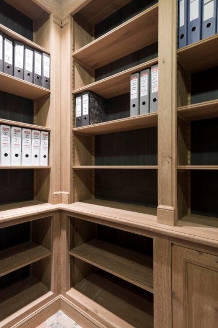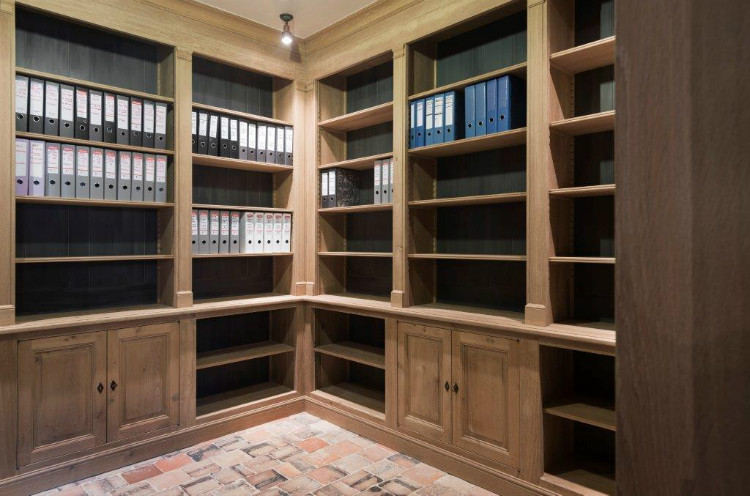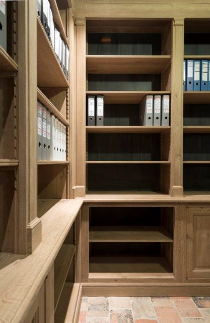 Archief gerealiseerd in eikenhout met gerecupereerde terracottategels.