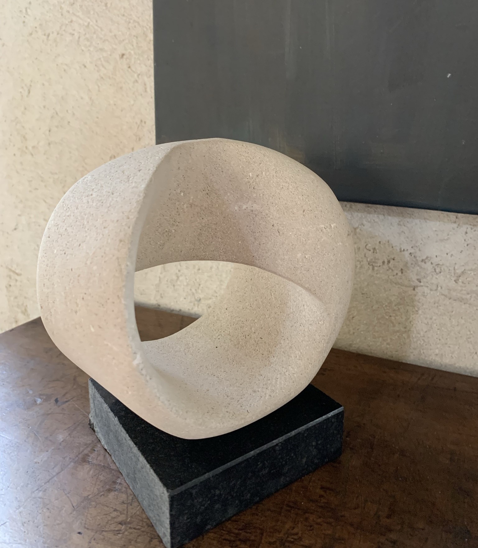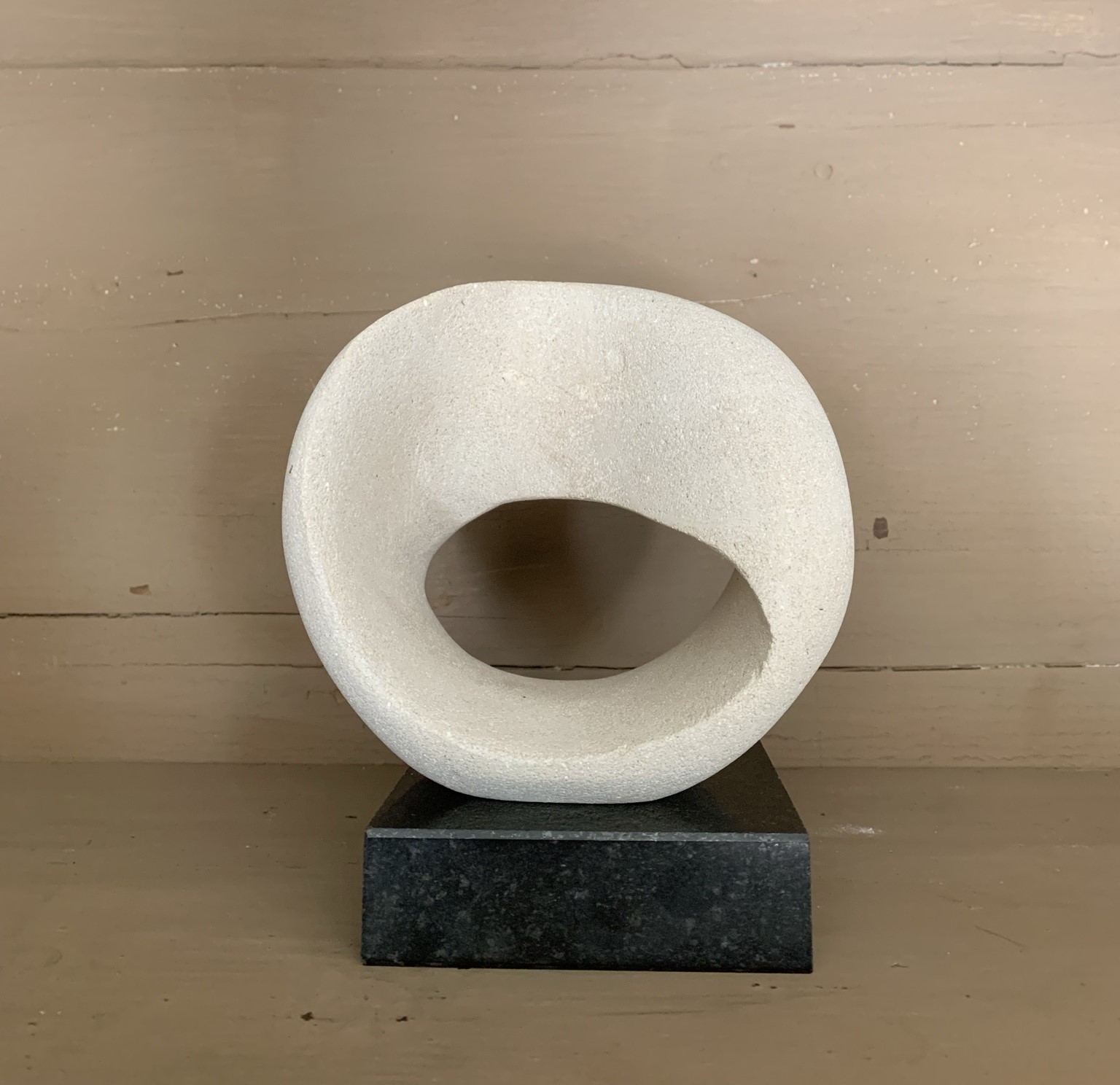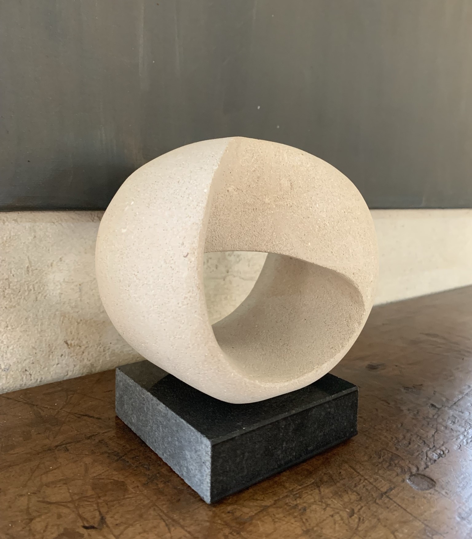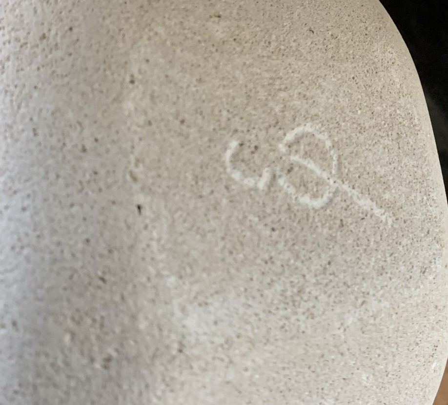 Een organische zandsteencultuur uit het midden van de eeuw. Geplaatst op een aparte marmeren sokkel. Fijn met de hand gesneden met uitstekende verhoudingen. Onleesbaar gesigneerd met een monogram van een onbekende maker. 10x10x13u, 600