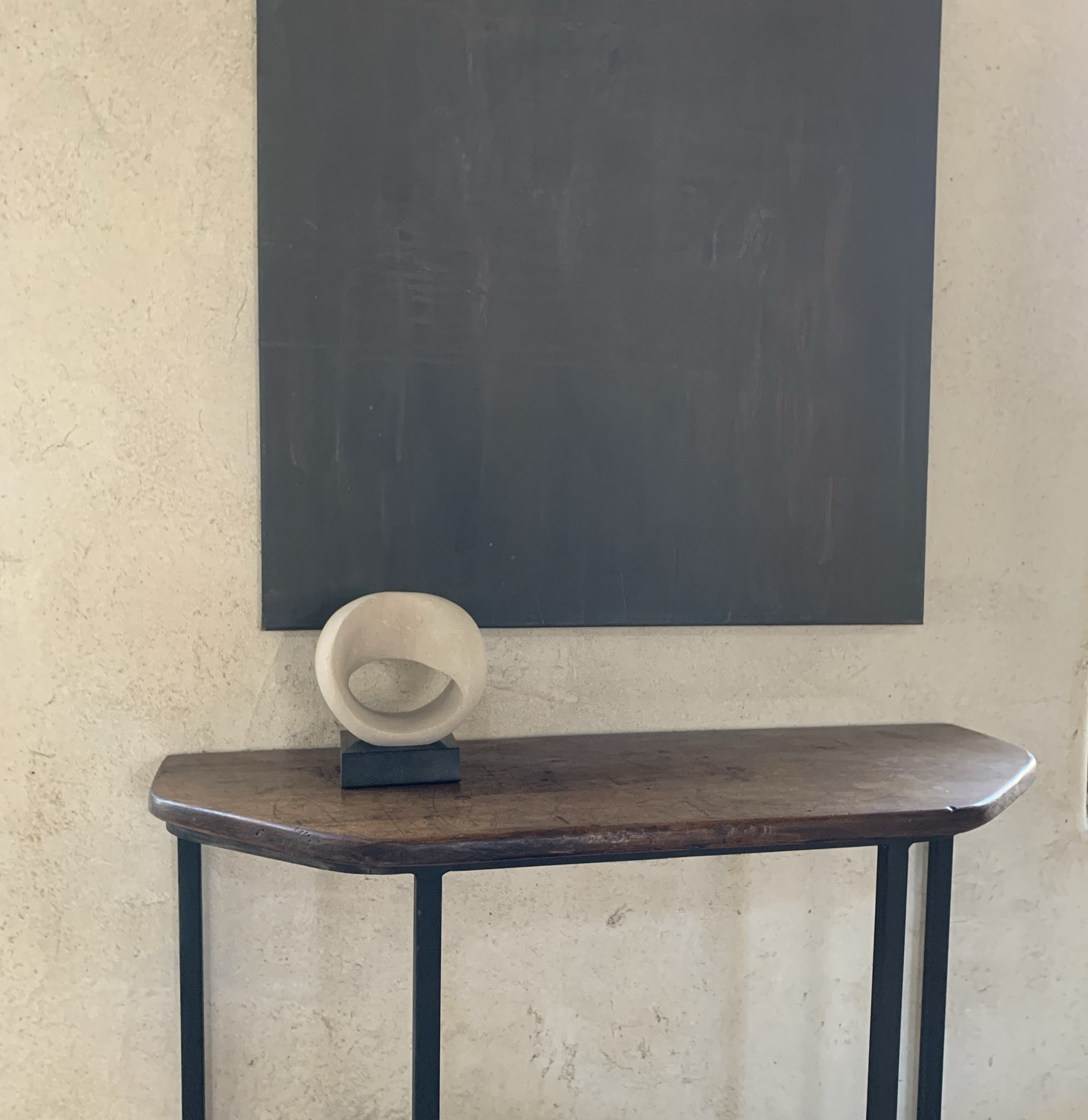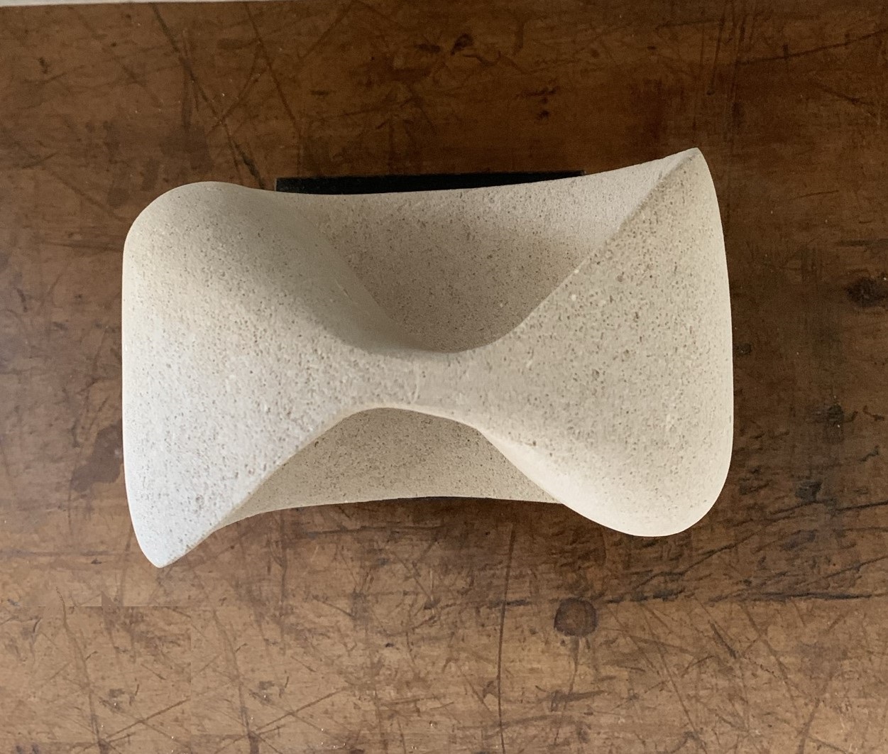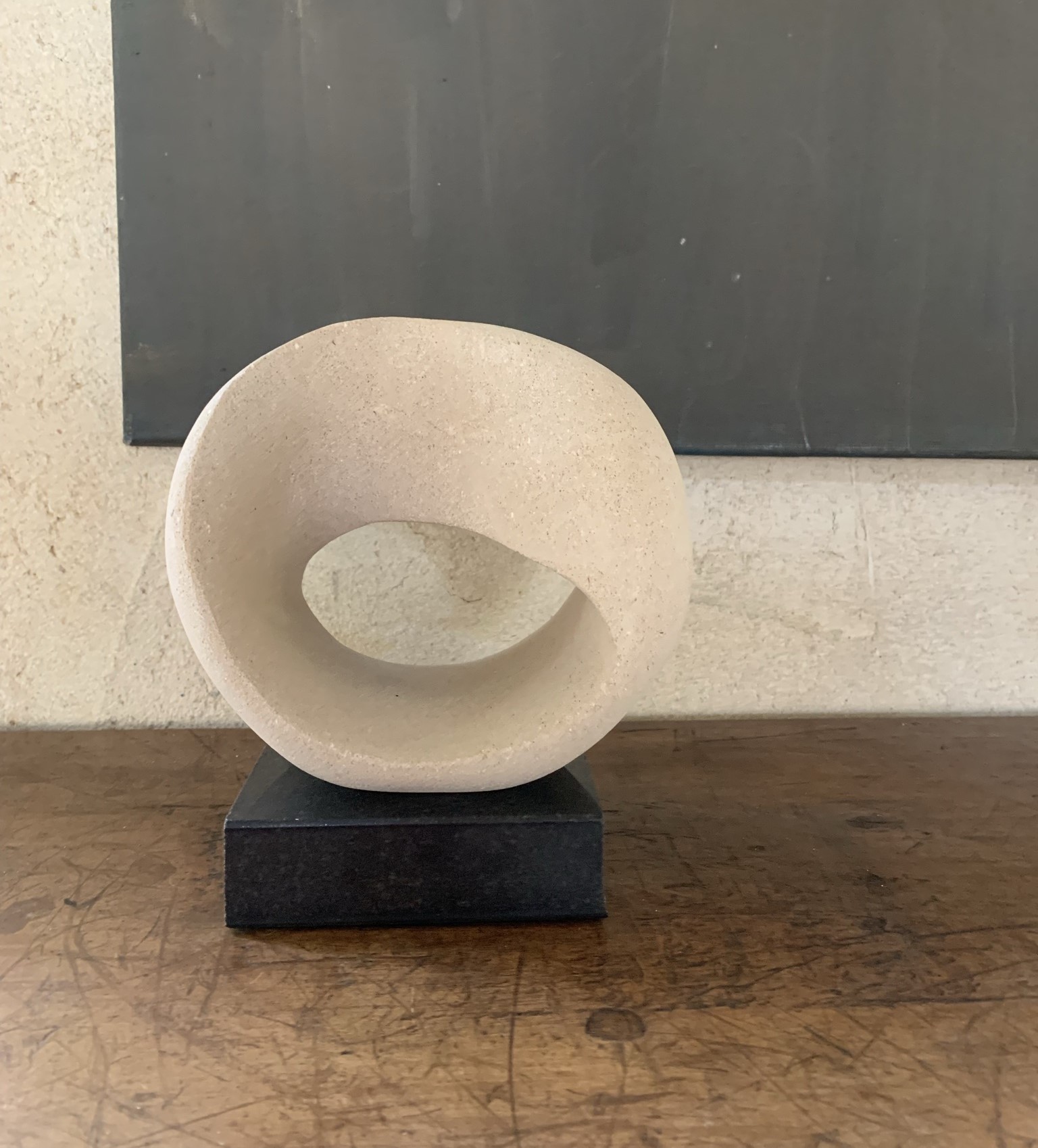 Een organische zandsteencultuur uit het midden van de eeuw. Geplaatst op een aparte marmeren sokkel. Fijn met de hand gesneden met uitstekende verhoudingen. Onleesbaar gesigneerd met een monogram van een onbekende maker. 10x10x13u, 600