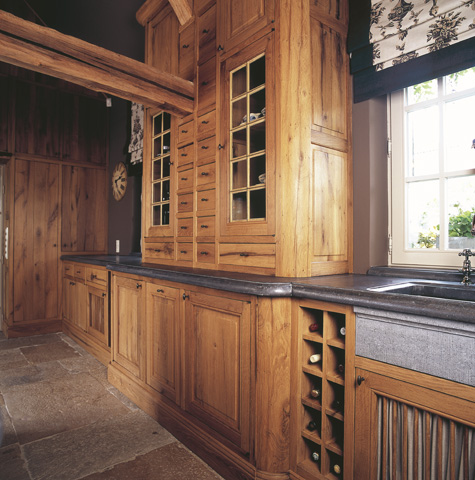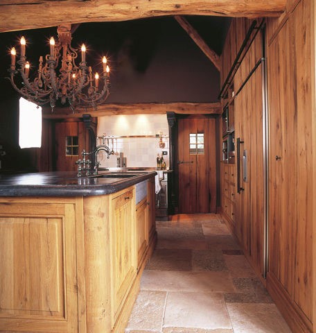 Ons atelier maakte deze keuken met hout verzaagd uit oude eiken balken.