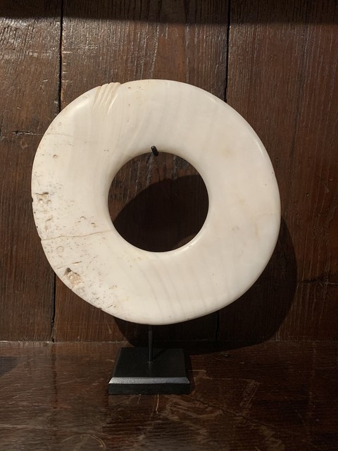 Early 20th century shell money ring mounted on a custom made stand, Papua New Guinea.