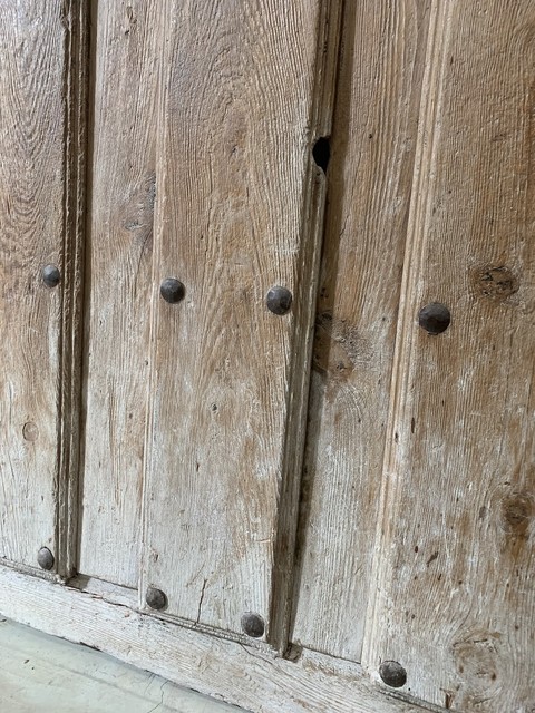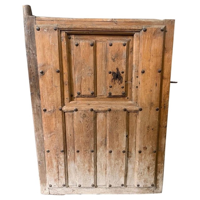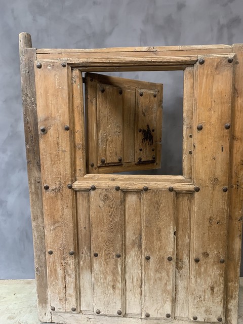 Een volledig originele prachtige Italiaanse staldeur uit het begin van de 18e eeuw. Deze deur is gemaakt van bergdennen en eikenhout en is gered uit een gesloopte Napolitaanse stoeterij. Het is nog steeds in goede staat met veel pijn en alle originele hardware. Leuke kenmerken zijn het scharnierende deurtje met zijn slotplaat in de vorm van een paard en de originele houten balken scharnierstijl