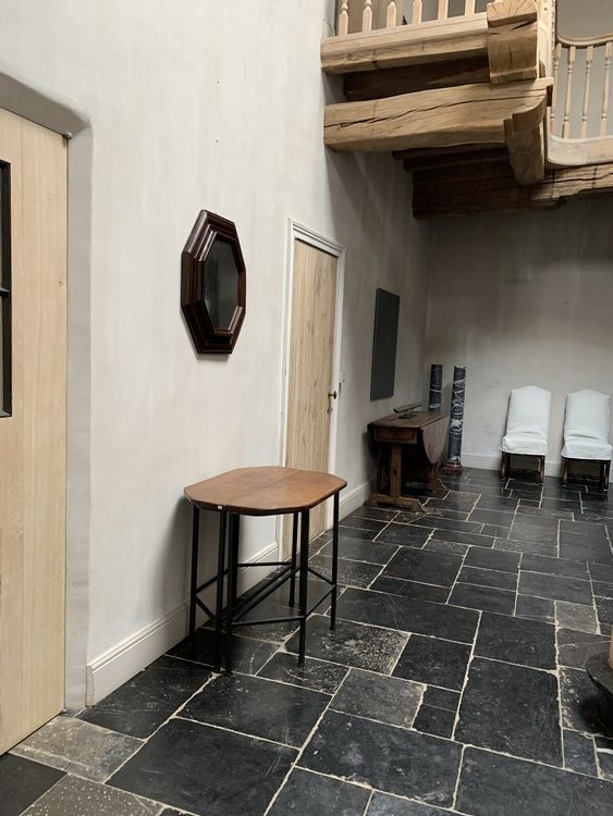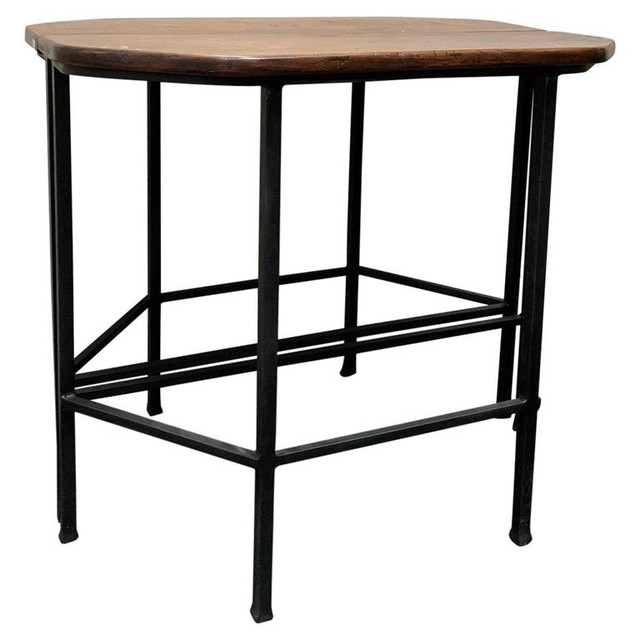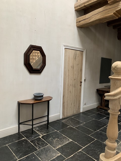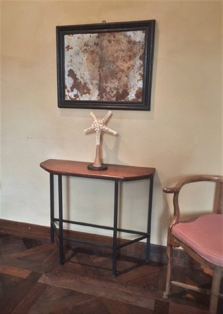 Een paar consoles gemaakt door onze werkplaats. De bladen van 18e eeuws Italiaans notenhout en de voetstukken van handgesmeed ijzer. Te gebruiken als centreertafel of als twee aparte identieke consoles.